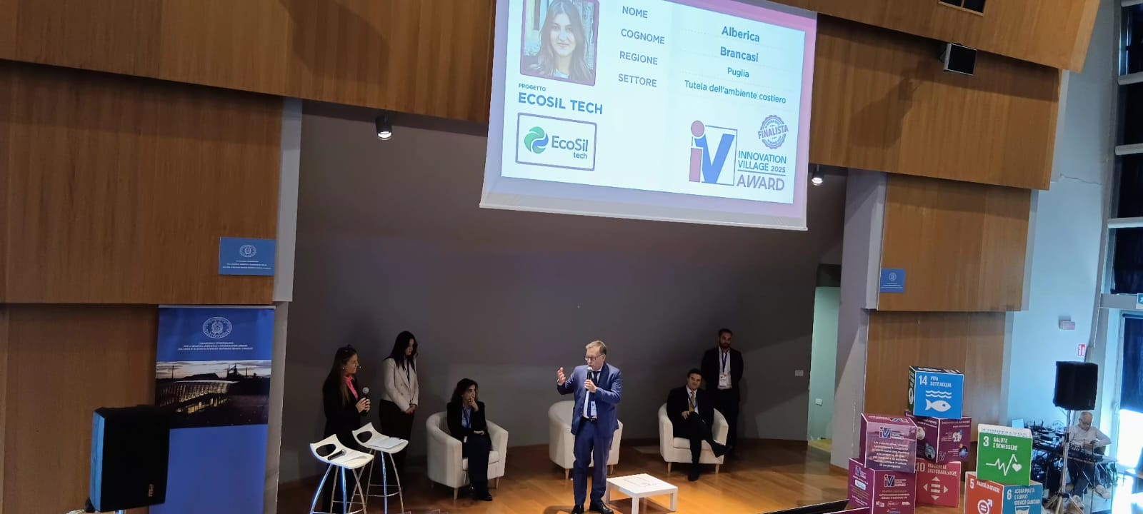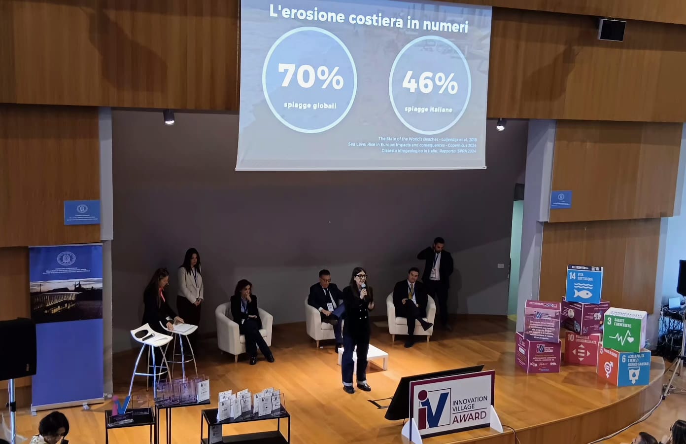 Ecosil Tech startup vincitrice della 18esima edizione della Start Cup Puglia, il Premio regionale per l’Innovazione organizzato da ARTI in collaborazione con Regione Puglia, Comitato Promotore e PNI ha vinto l’”Ambito 8” quello dedicato ai vincitori delle tre Start Cup regionali affiliate a Innovation Village Award: Puglia, Campania e Lazio. Alberica Brancasi, Simona Martano e Giovanni De Salve hanno portato la loro idea oltre i confini della Puglia per presentare una soluzione nature-based costituita da una miscela eco-compatibile a base di nanosilice, applicata tramite nebulizzazione o iniezione, per contrastare i fenomeni di erosione costiera consolidando i sedimenti. Con Ecosil Tech anche una delegazione di ARTI con il direttore della Start Cup Puglia Stefano Marastoni.